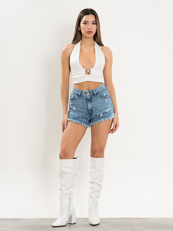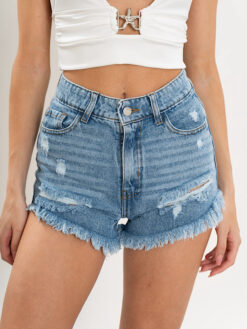 a- Short Azul desflecado con roturas (Eden)